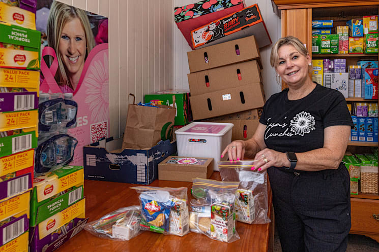 Jacqui Martin with the lunchbox supplies. Photo: LYLE RADFORD